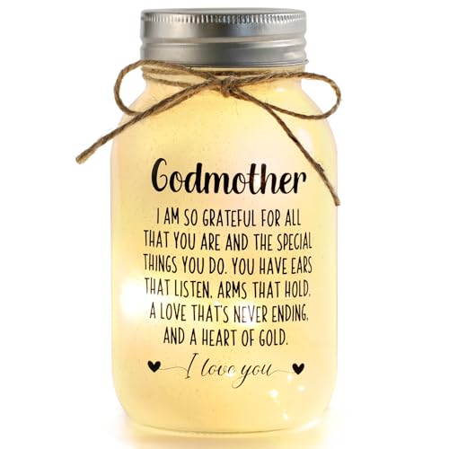 Pleasing your godmother is easy with this charming Mason jar adorned with warm LED lights. Printed with heartfelt words, it creates a cozy, inviting glow perfect for a desk, shelf, or bedside table. Battery-operated and beautifully packaged, it’s ready to gift for birthdays, Christmas, or just to say “thank you.” Elegant, practical, and heartfelt, it’s a little piece of light that reminds her how much she’s loved.
