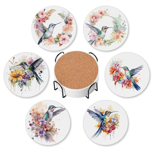 These watercolor hummingbird coasters make a lovely gift for someone who enjoys adding small, meaningful touches to their home. Each ceramic coaster shows off a bright, artistic design, and the cork backing keeps tables safe from scratches and spills. The included metal stand makes storage neat and pretty. It’s a simple, practical present that brings a bit of hummingbird charm to every coffee break or evening drink.